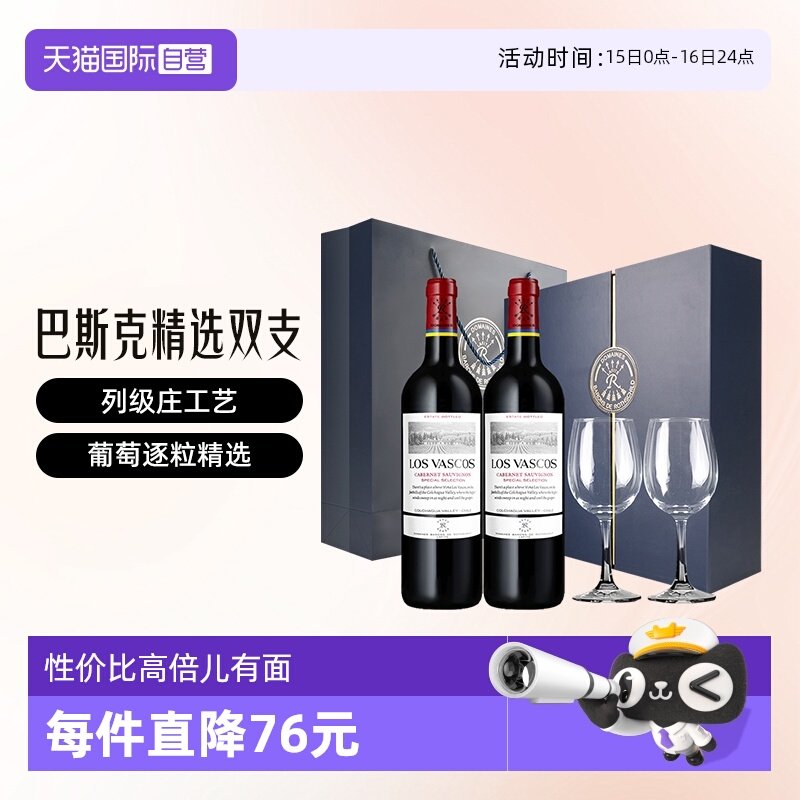 【自营】LAFITE/拉菲 智利巴斯克精选葡萄酒 750ml*2/礼盒 大贸