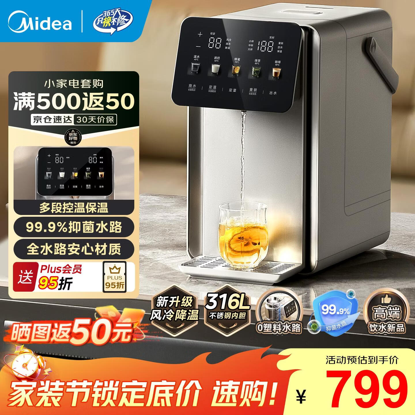 美的(Midea) 小魔方pro电热水瓶 风冷快速降温电水壶 多段恒温电热水壶饮水机 316L母婴不锈钢烧水壶 5L 【新款】SP50E-31FPro