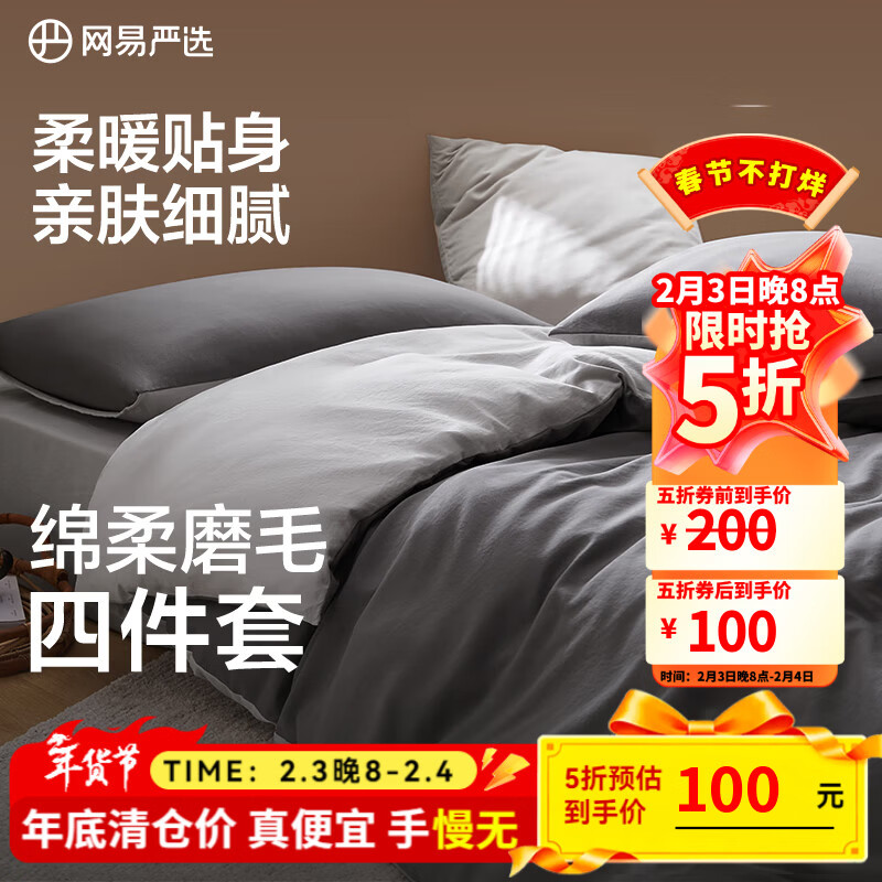 网易严选日式裸眠亲肤磨毛四件套酷灰色床单被套枕套1.8m床/2.2mx2.4m被芯