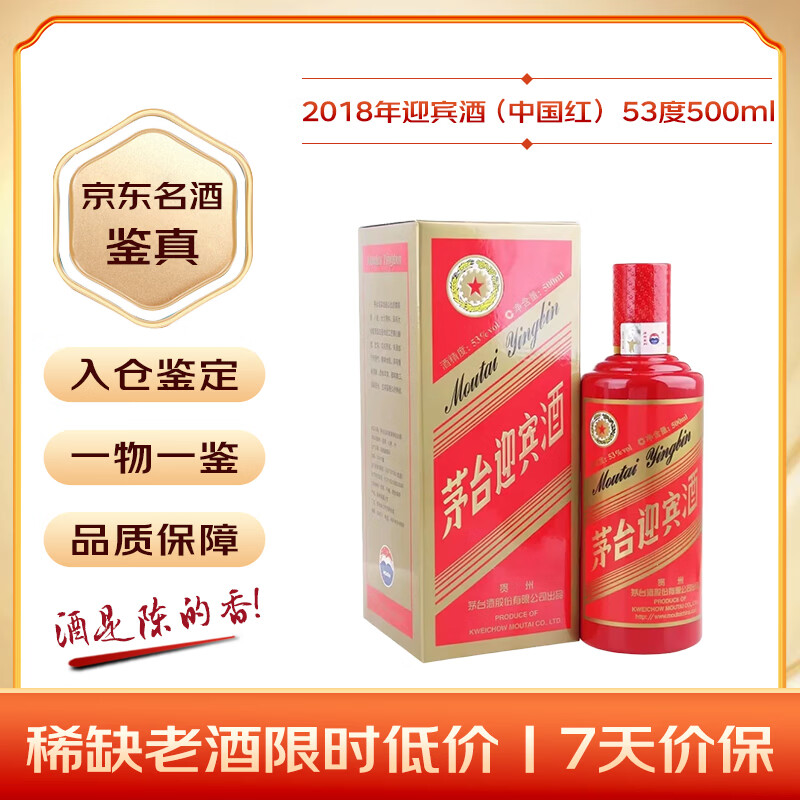 茅台 迎宾酒(中国红)2018年 酱香型白酒 53度 500ml 单瓶装 收藏酒/陈年老酒 礼赠宴请收藏【名酒鉴真】