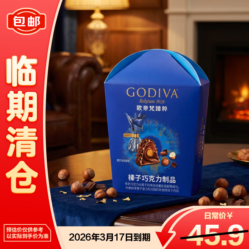 歌帝梵(Godiva)臻粹榛子巧克力制品6颗装60g 休闲零食下午茶伴手礼【临期清仓】