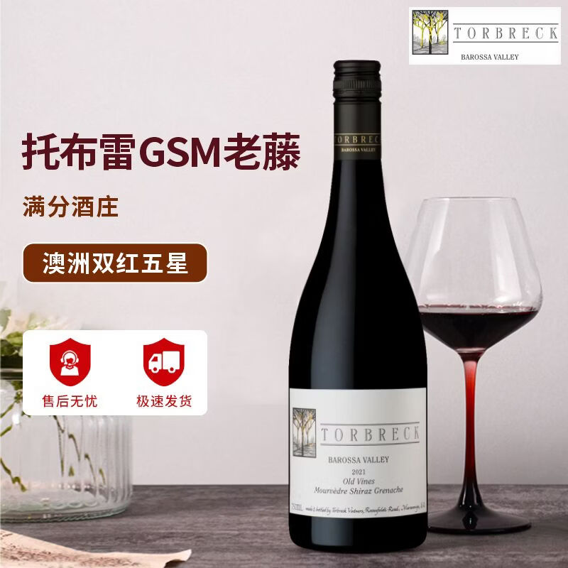萄贝【满分酒庄】澳洲原瓶进口红酒托布雷酒庄伐木工西拉干红750ml 老藤干红*1支