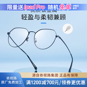 依视路(ESSILOR) 钻晶系列高清耐磨防蓝光近视超薄镜片专业配度数眼镜架男女镜框 钛+金属-全框-4042BK-黑色 镜框+依视路A4防蓝光1.56现片