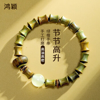 鸿颖绿檀木手串男士盘玩佛珠竹节手链女学生上岸夜光转运珠檀香木把件 绿檀木手串礼盒装