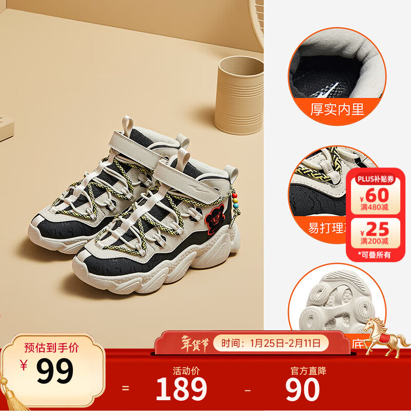 鸿星尔克童鞋男简约百搭儿童休闲运动鞋中大童男童慢跑鞋丨电池熊猫 黑土地/苍野灰 -偏小1码 38