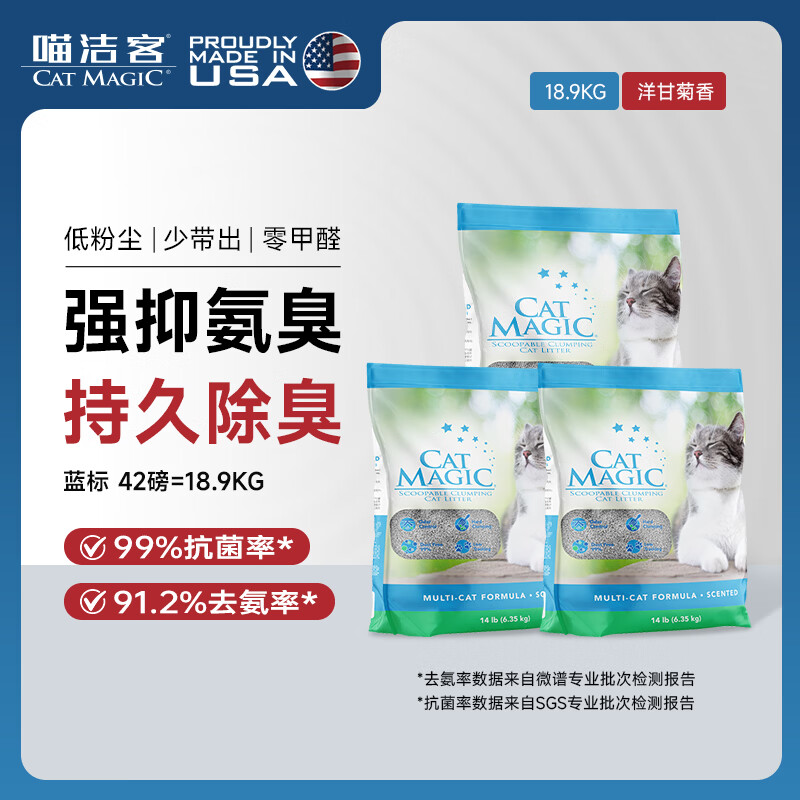喵洁客(CAT MAGIC)猫砂美国原装进口矿砂钠基矿石抗菌去氨膨润土猫砂42磅蓝标
