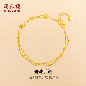 周六福双层圆珠黄金手链女足金999手链计价AB073447 约4.54g 15+2cm