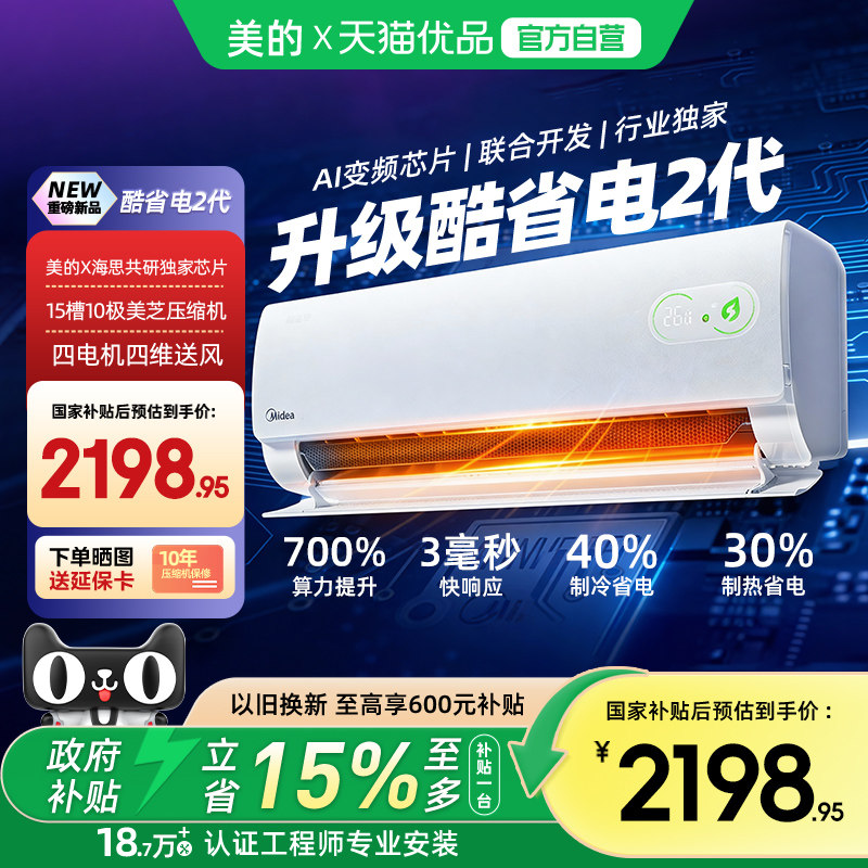 美的空调新品酷省电1.5匹1匹新一级能效冷暖变频家用卧室壁挂机