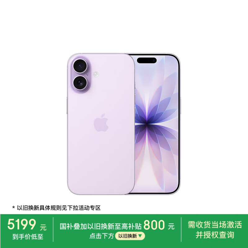 Apple/苹果 iPhone 17 256GB 薰衣草紫色 支持移动联通电信5G 双卡双待手机