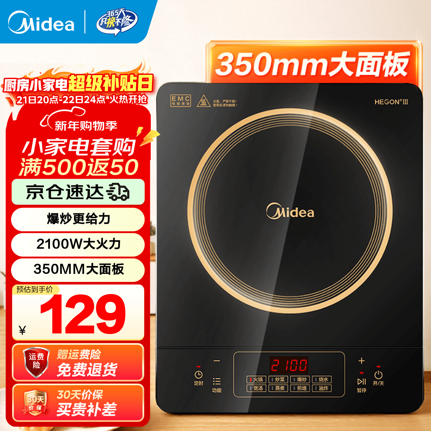 ÃÀµÄ£¨Midea£©µç´Å¯¼ÒÓà ´ó¹¦ÂʼÒÓõç´ÅÔîÃͻ𱬳´ÄÍÓ÷ÀË®Ãæ°å °Ëµµ»ðÁ¦Ï˱¡µç³ØÂ¯ ÐÐÒµ±¬¿î ¡¾µ¥Ôî¡¿2100W´óÃæ°å