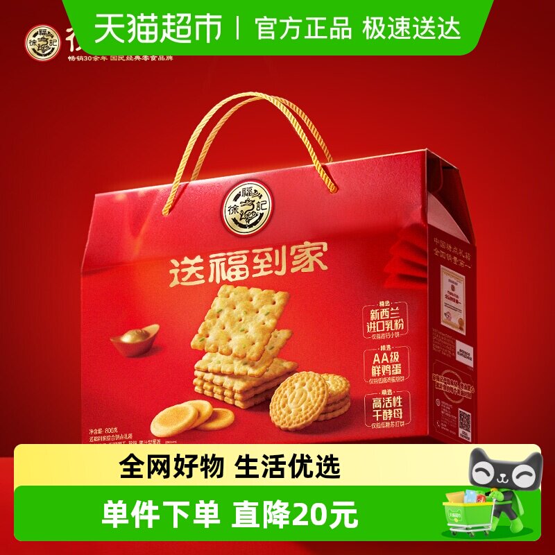 【年货送礼】徐福记送福到家饼干礼箱806g礼盒零食品小吃礼包糕点