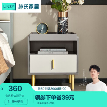 林氏家居原林氏木业现代轻奢床头柜主卧室小型收纳储物抽屉柜子简约CJ1B 【灰色+白色】CJ1B-A床头柜