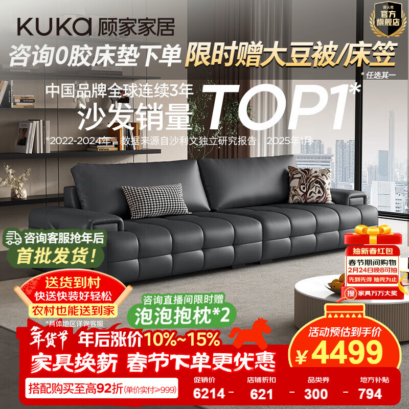 顾家家居焕新pro版劳伦斯沙发26年新款羽毛填充头层牛皮直排客厅沙发1383 【舒适版】坚韧耐磨头层牛皮青黛黑2.8m三人位