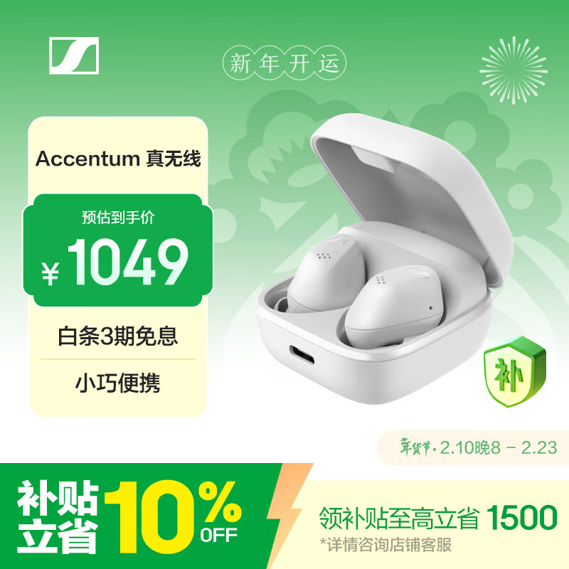 森海塞尔(Sennheiser)【焕新补贴】ACCENTUM真无线耳机主动降噪蓝牙音乐入耳式耳机 雪域白 年货 情人节礼物