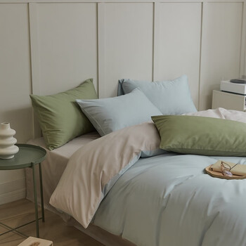 兰芮(Lanrui) 100支全棉四件套纯棉床上用品被罩床单枕套亲肤裸睡全棉套件 爱丽丝蓝 200*230cm四件套(1.5/1.8米床)