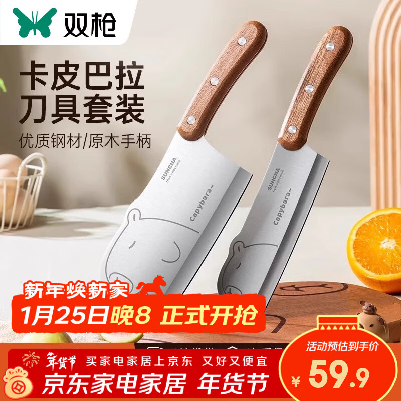 双枪家用菜刀厨房刀具2024新款萌猫刀锋利刀具套装切片刀水果刀辅食刀 【升级款】菜刀+小厨刀【卡皮巴拉款】