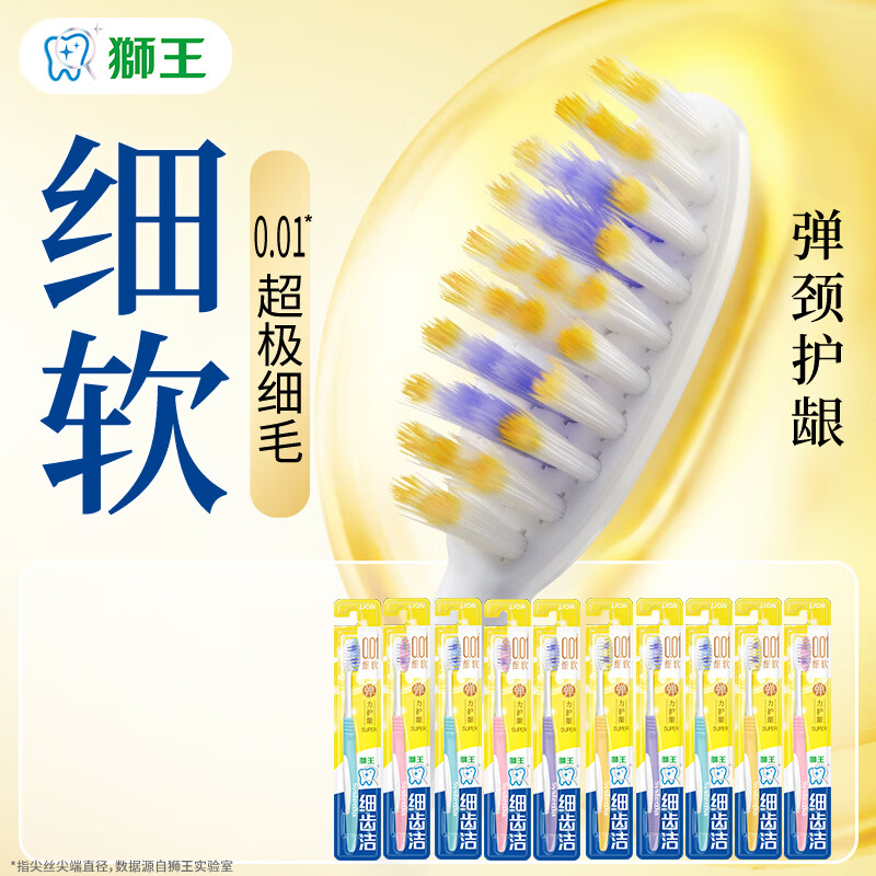 狮王细齿洁弹力护龈牙刷 软毛家庭装弹力单支装 狮王软毛牙刷 软毛 10支