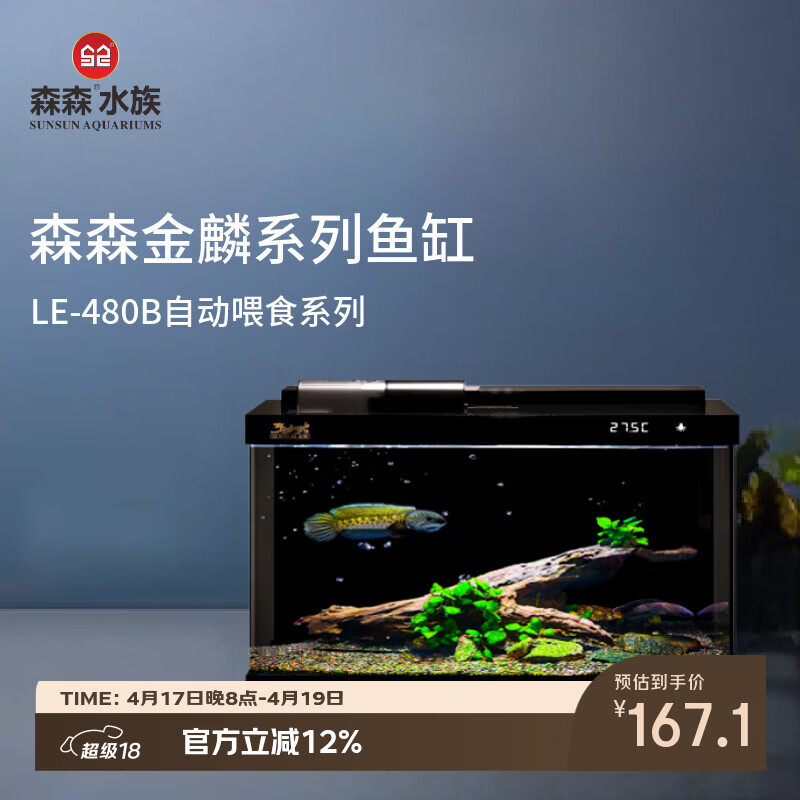 森森金麟超白玻璃鱼缸一体缸自循环客厅小型家用水族箱LE-480B